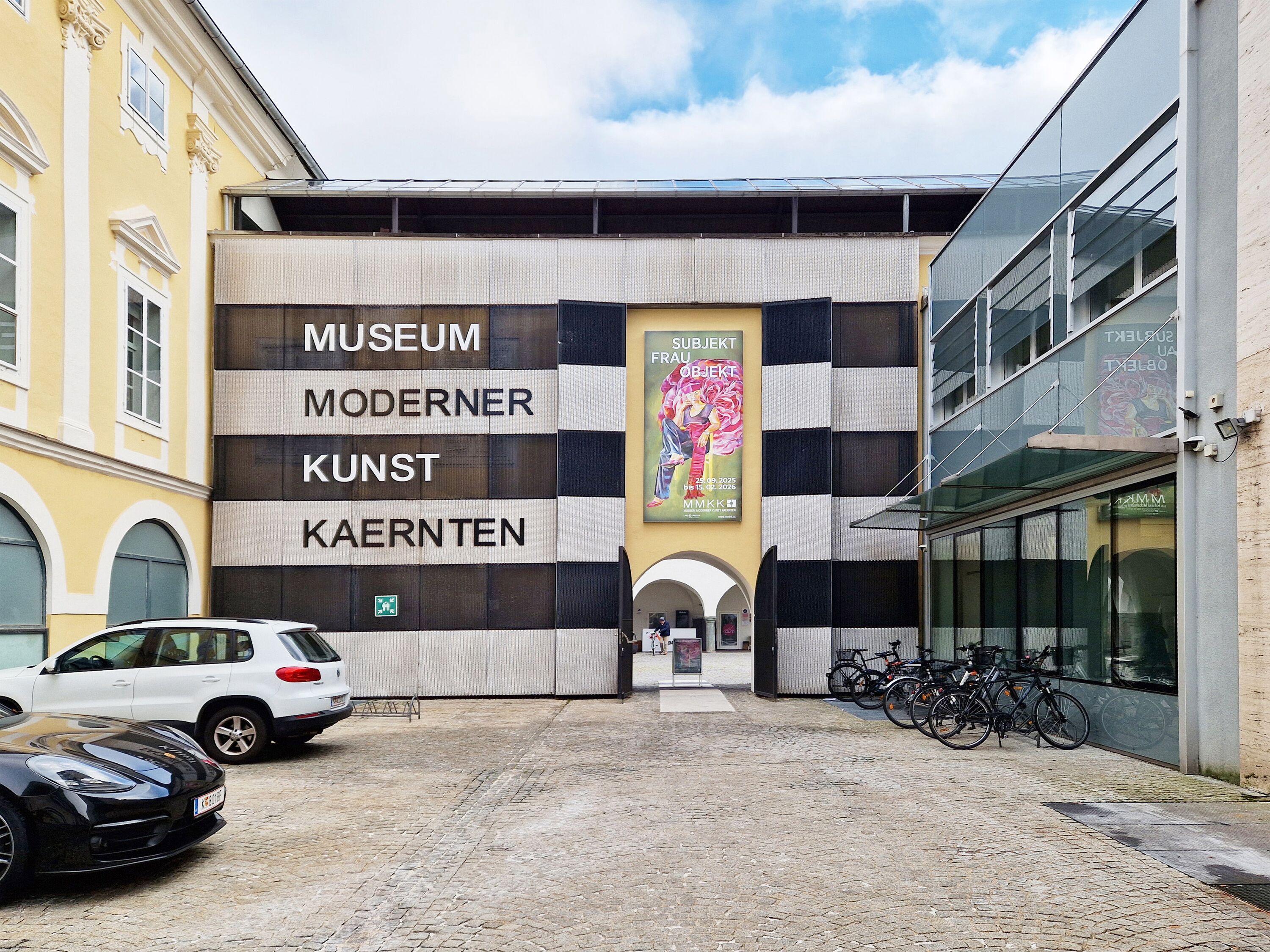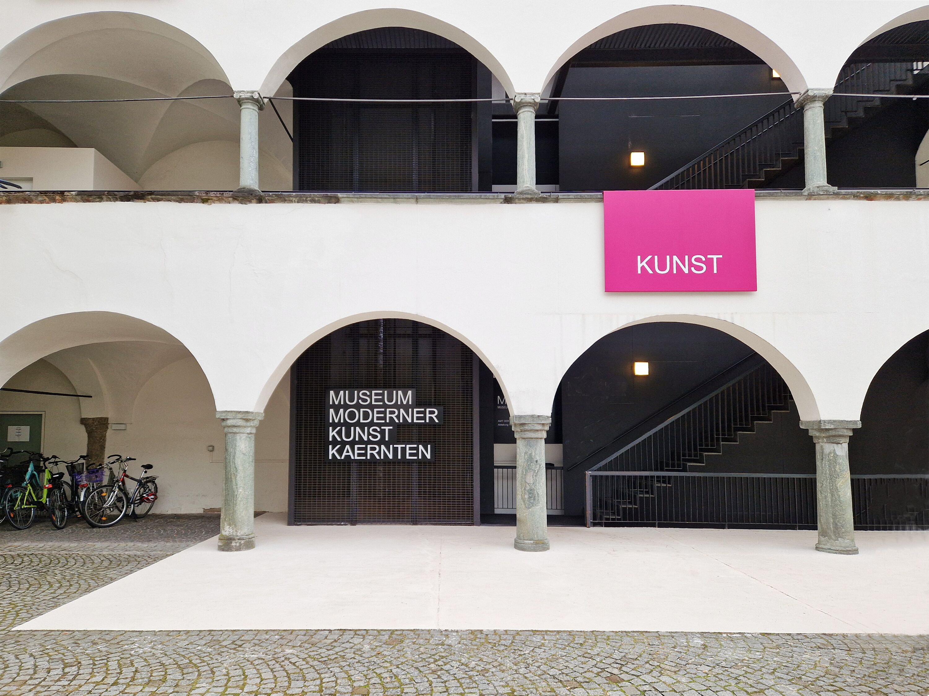 In Einbeziehung des Zu- und Umbaus des historischen Gebäudes 2003 durch die Architekten Dominikus/Mikula, der Boden- und Fassadengestaltung von Josef Havelka sowie der Corporate Identity des Museums Moderner Kunst Kärnten wird unter dem Motto „Flagge zeigen“ ein signifikantes Leitsystem entwickelt. Durch die Inszenierung der Wortmarke MUSEUM MODERNER KUNST KAERNTEN und des MMKK-Logos auf den Beschilderungen und Transparenten wird der Inhalt des Gebäudes plakativ nach außen getragen.